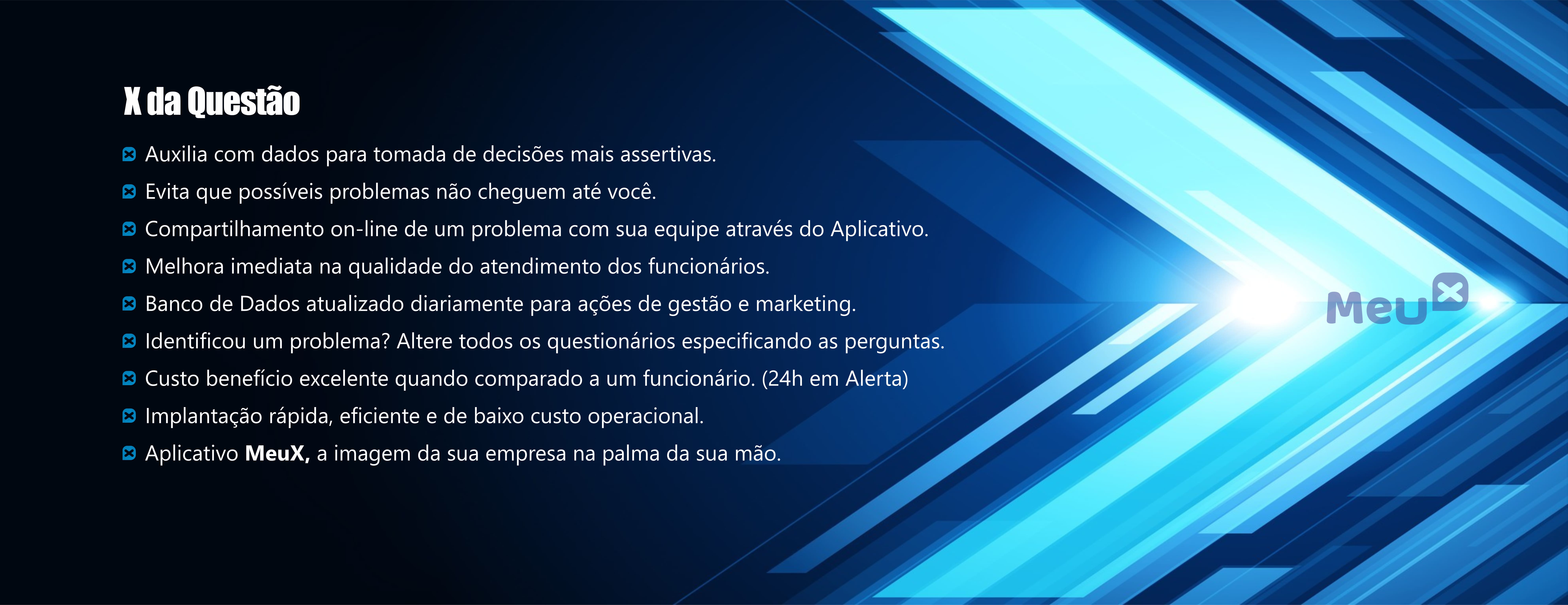 O MeuX é uma solução inteligente para obter essas e outras respostas com precisão, utilizando o NPS, que é uma metodologia internacional de pesquisa, aliado a um APLICATIVO com RELATÓRIOS em tempo real, você terá um canal direto com seu cliente, melhorando sua tomada de DECISÃO, e principalmente, evitando que possíveis problemas, não cheguem até você.